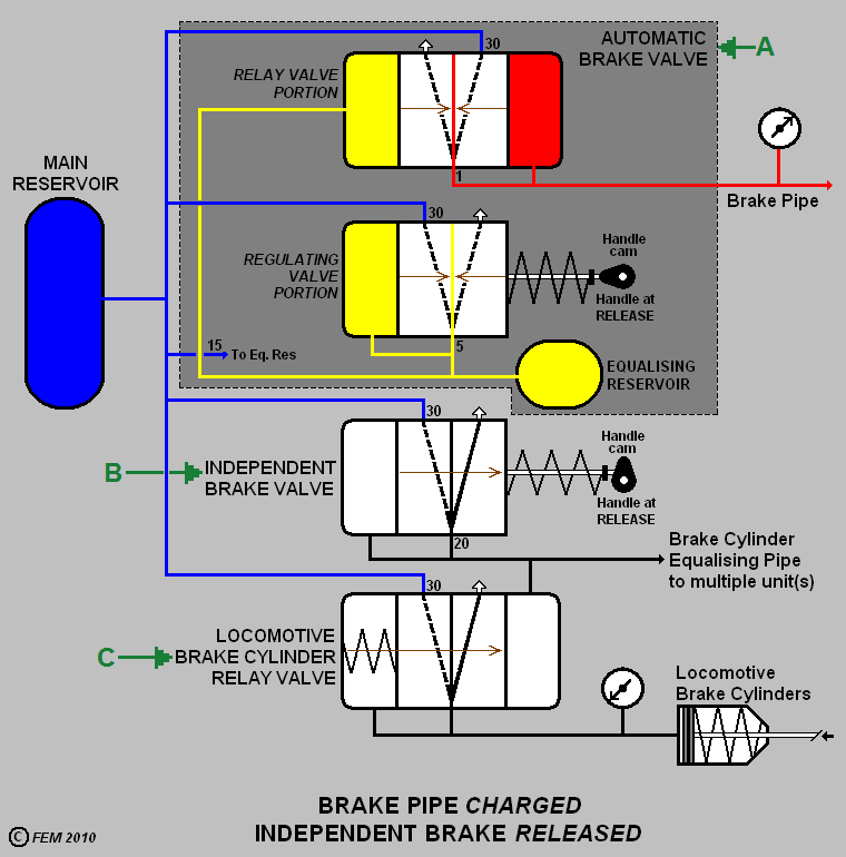 Air brake instruction -26L diag1 Published June 2, 2017 at 760 × 770 in Air brake instruction -26L diag1 Figure 8: Brake Pipe is charged (train brakes released) and Independent brake is released.